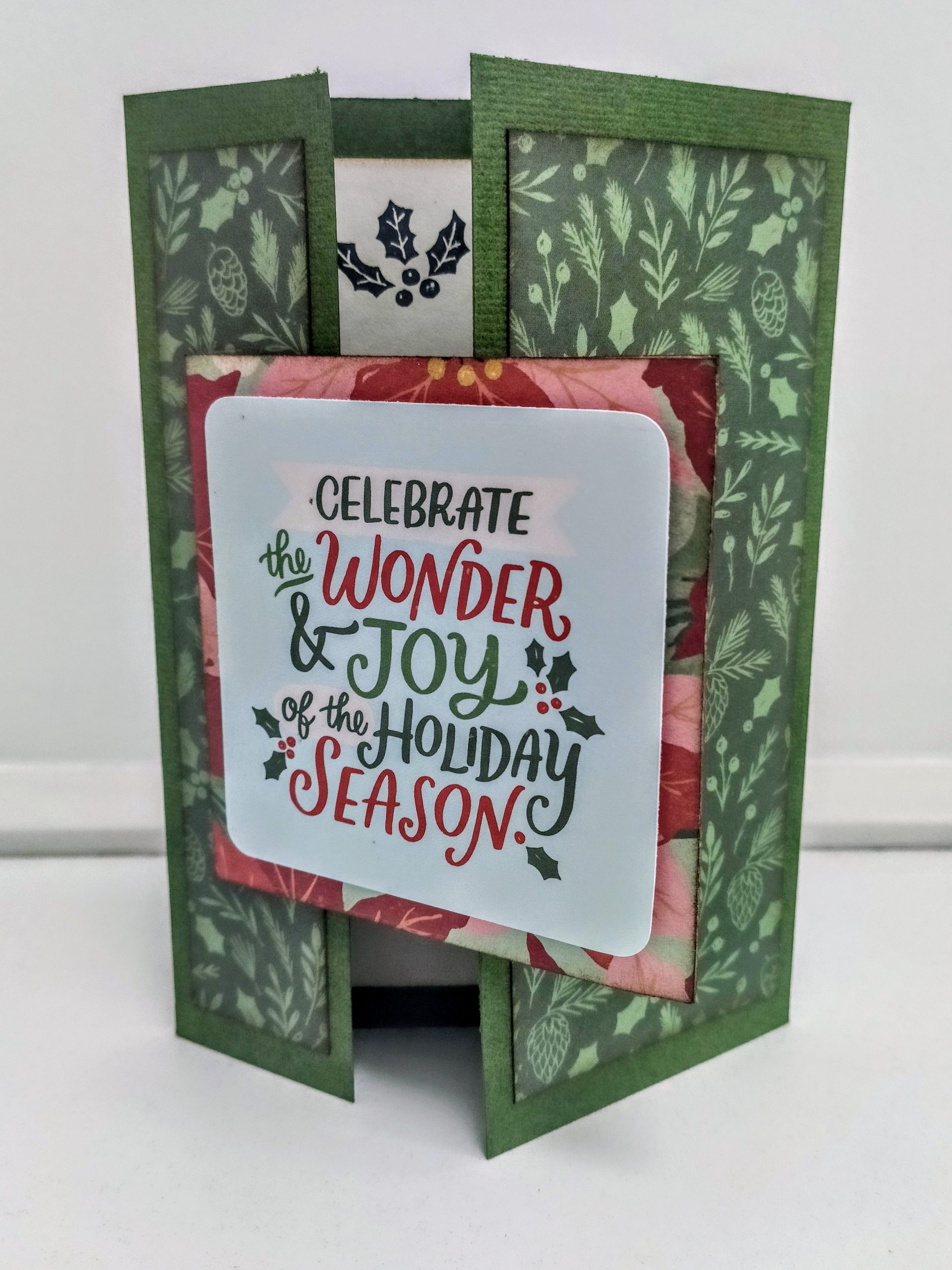 Postal navideña realizada a mano, con la sencillez del predominante color verde navidad. Postal preparada para escribir directamente y añadir lo más valioso: tus palabras.